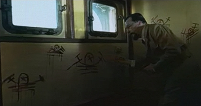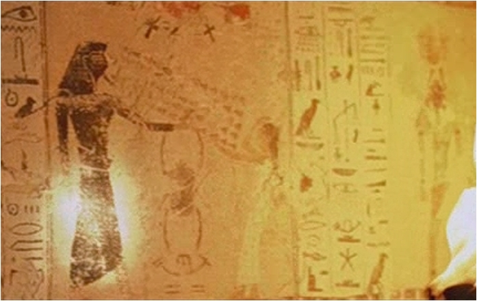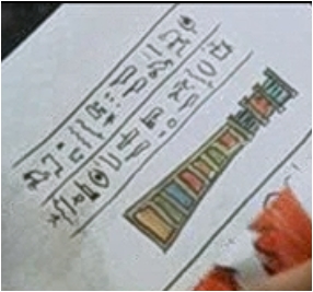 L'espion Hubert Bonisseur de la Bath, grâce à sa connaissance approfondie des hiéroglyphes, trouve la sortie du piège de la grande pyramide et actionne le mécanisme. L'hiéroglyphe ressemble à