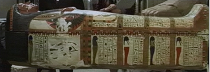 Le professeur Banning découvre la tombe d'Ananka, grande prétresse du dieu Karnak et le coffre où se trouve le manuscrit qui contient les formules pour ramener à la vie la momie.