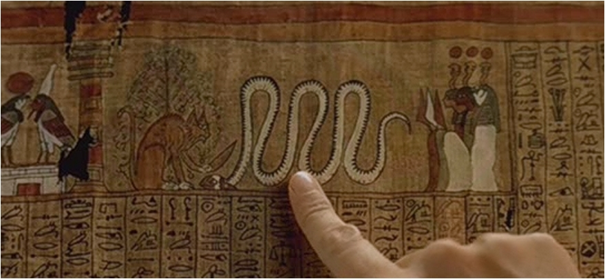 Bien que le film "le Cinquième Elément" commence et finisse dans un temple égyptien, les rares hiéroglyphes qui y sont montrés très rapidement sont pour la plupart fantaisistes. Juste un petit exemple pour citer le film :