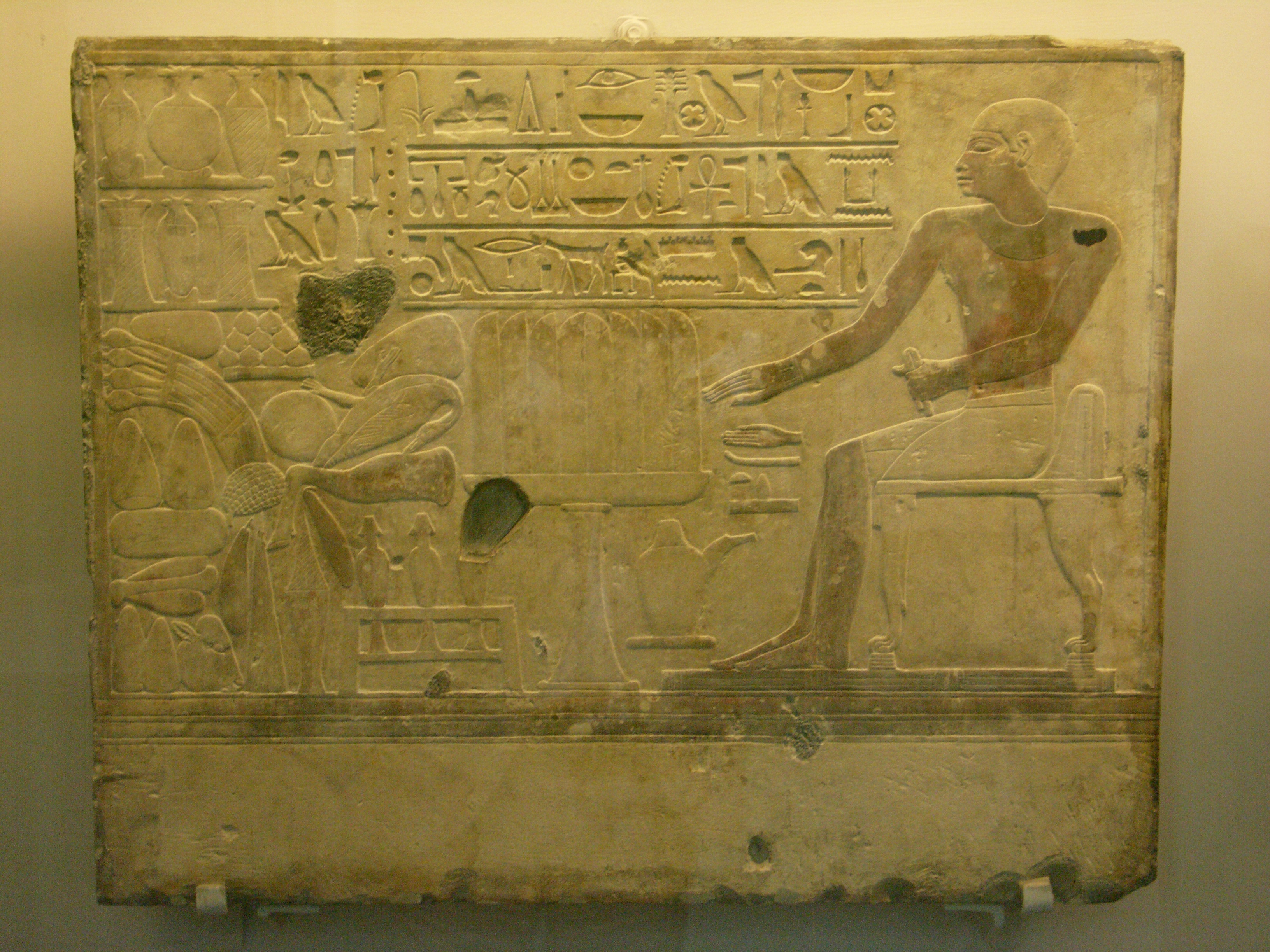 Scène conventionnelle du propriétaire de la tombe devant une table d'offrandes