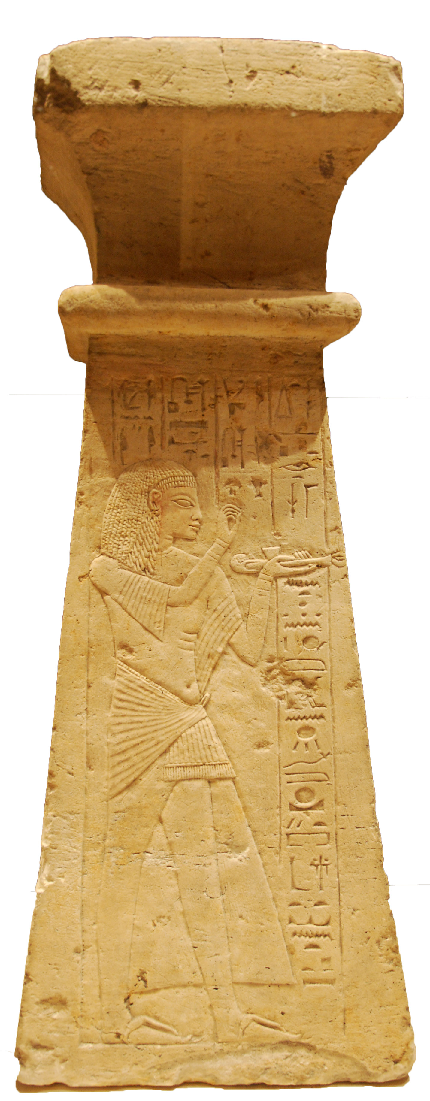 Le scribe royal, chef des scribes des lettres Iny, et le chef des prêtres Ptahmay (non photographié) font brûler de l'encens devant les dieux Rê-Horakhty et Osiris. (Cartel du Louvre)