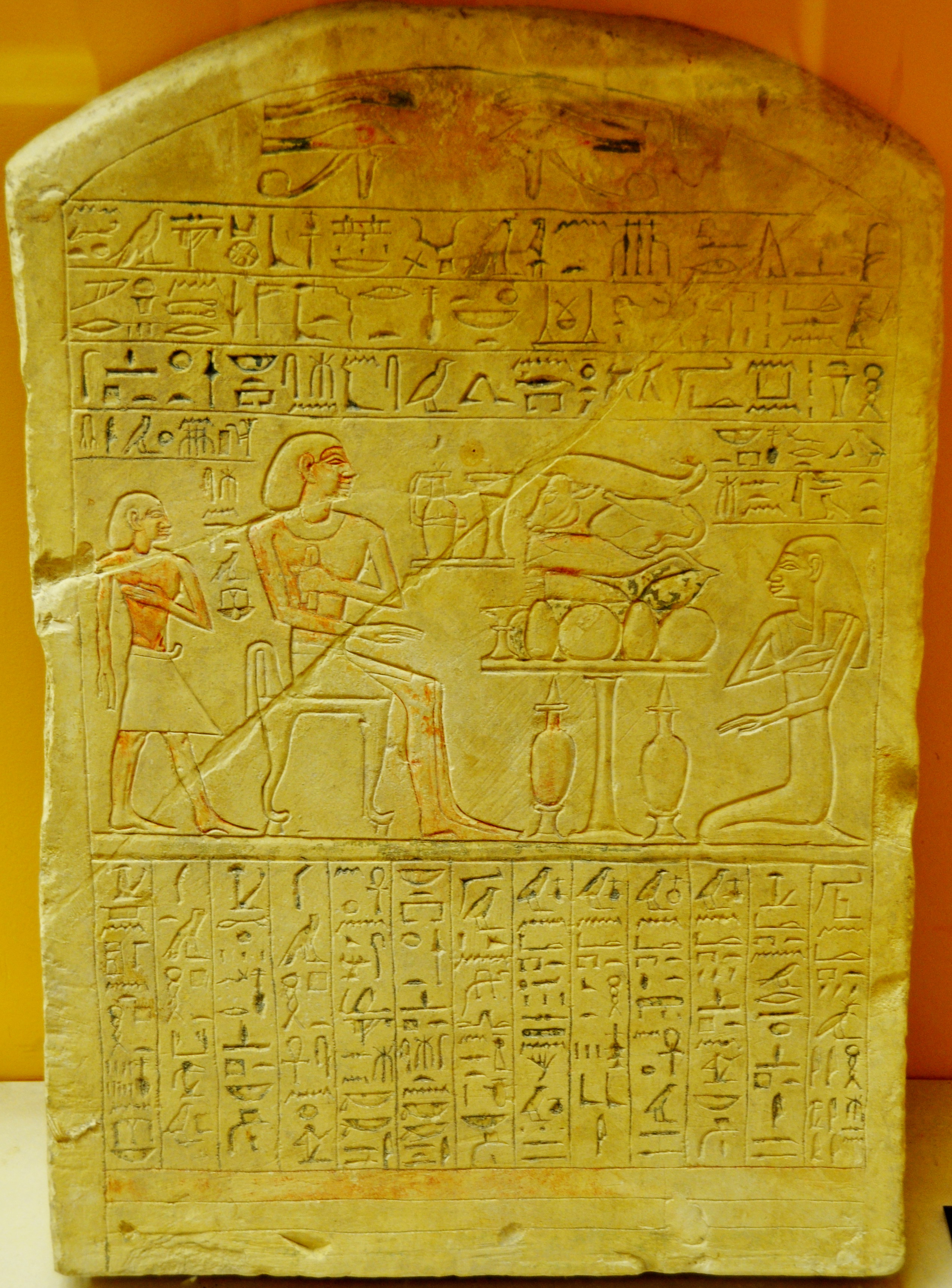 Lignes 1-3 en haut de la stèle, surmontées de deux yeux Oudjat