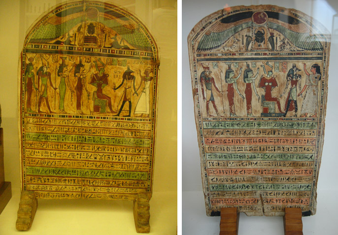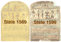Voici deux stèles très semblables qu'il nous a paru intéressant de mettre en parallèle. Elles sont présentées côte à côte au musée Egizio de Turin.