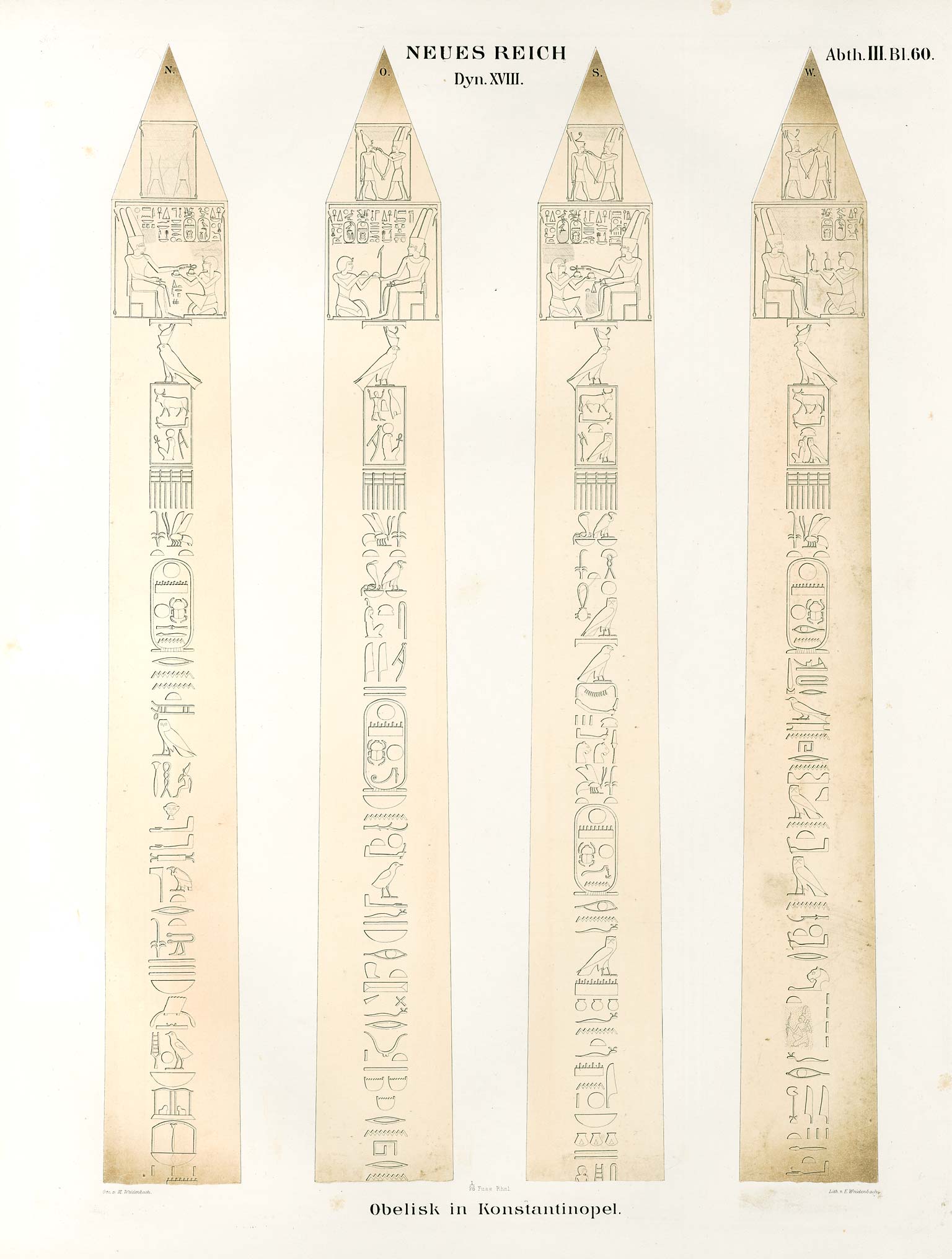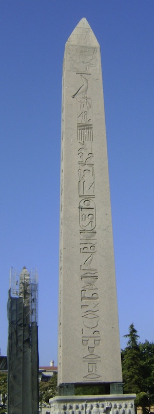 Cet obélisque est aussi appelé "Obélisque de Théodose" (en relation avec l'Empereur romain qui l'a érigé en 390 après J.C.) et qui se trouve sur sur la place qui fait face à la mosquée bleue d'Istamboul, actuellement.