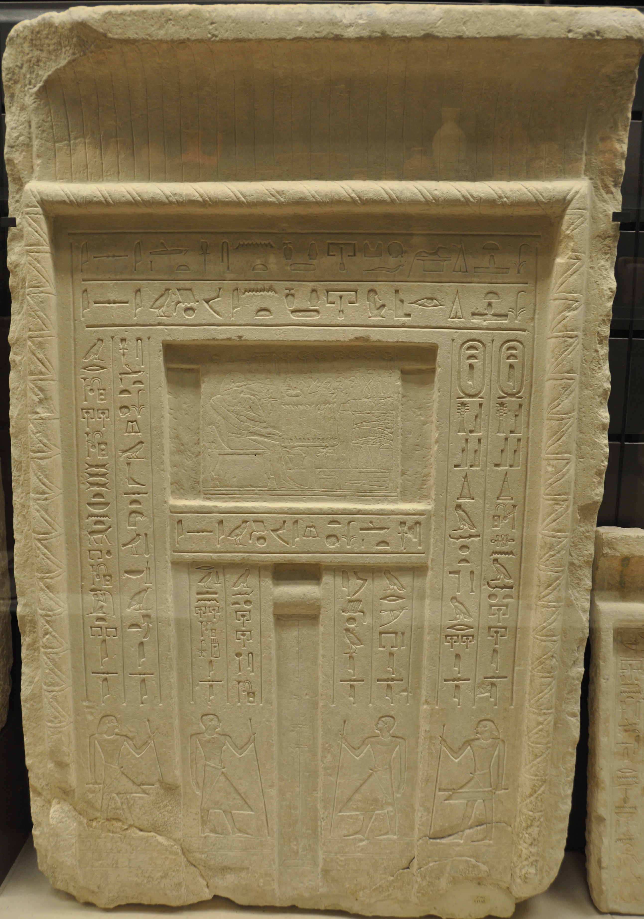 Les stèles trouvées contre les parois des tombeaux de l'Ancien Empire sont la plupart du temps en forme de porte : l'esprit du défunt pouvait ainsi aller et venir à sa guise hors du tombeau.