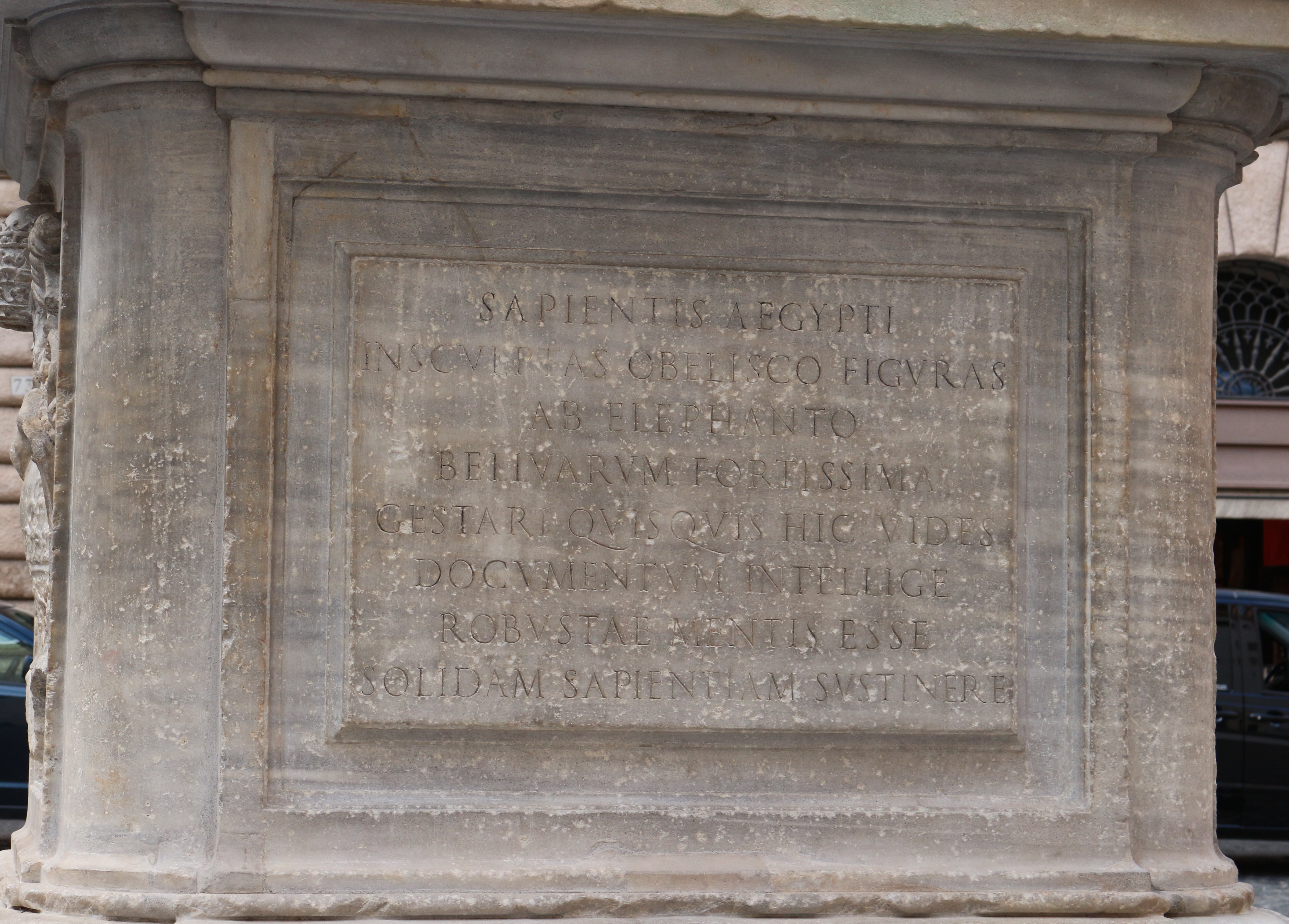 Gian Lorenzo Bernini conçut alors un piédestal dans le style baroque, avec un éléphant de marbre.