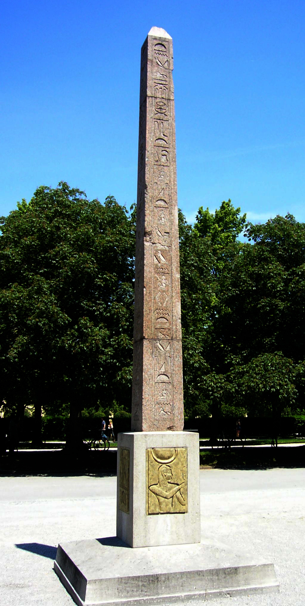 Un obélisque de l'Iseum est signalé au palazzo Cavalieri-Maffei, piazza Branca (auj. piazza Cairoli), puis à la villa Albani, puis semble-t-il envoyé à Paris par Napoléon, puis restauré par Cavaceppi et envoyé à la glyptothèque de Munich, où il se trouve encore. Constitué de trois fragments, il était exposé en extérieur dans le Hofgarten, devant le Staatliches Museum Ägyptischer Kunst (Musée national d'Art Égyptien), sur un socle moderne.