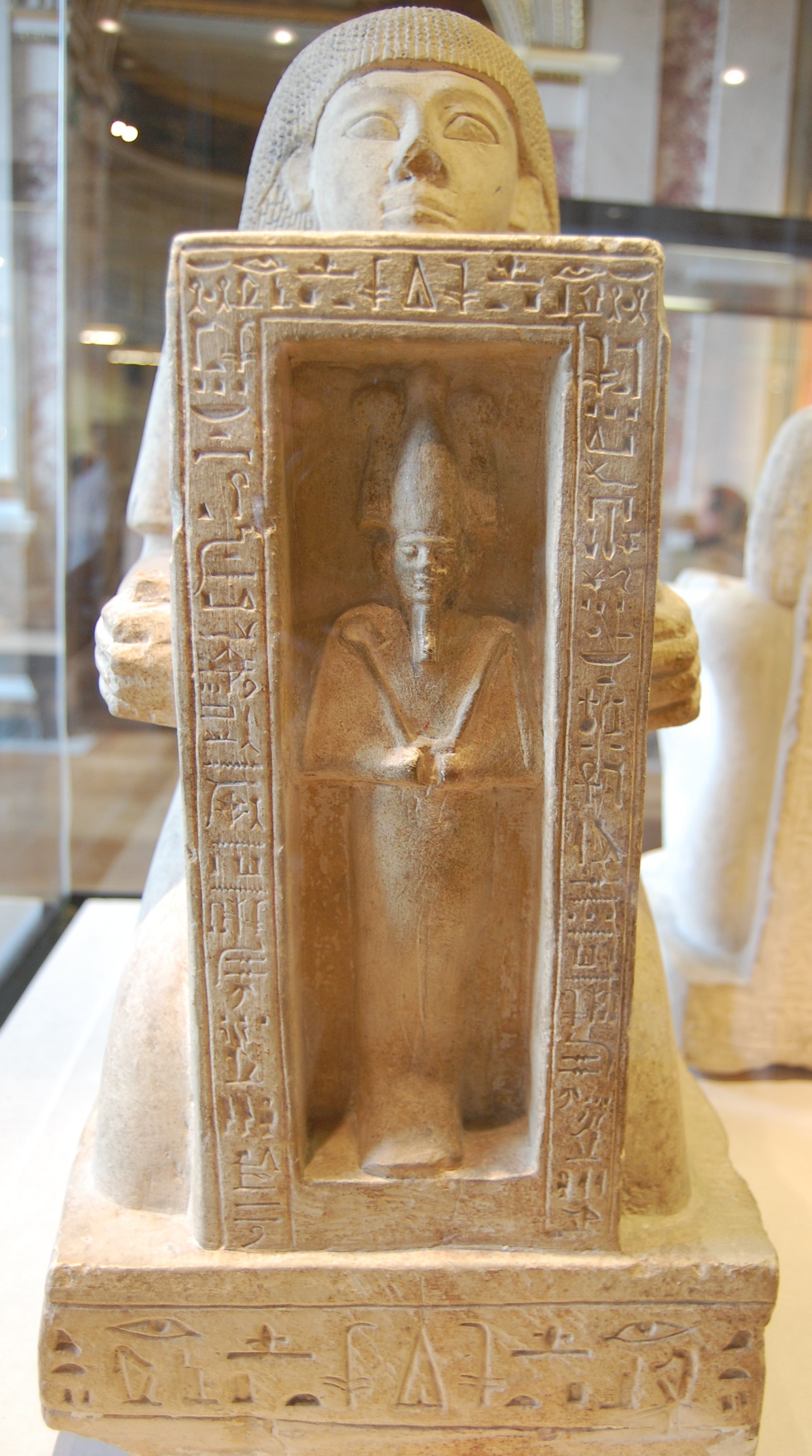 Statue naophore de Souty, scribe royal et responsable des chevaux, qui présente une chapelle du dieu Osiris.