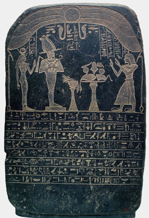 Stèle funéraire réalisée sur un support bleu-noir (syénite) par sa femme Inimennayneb.