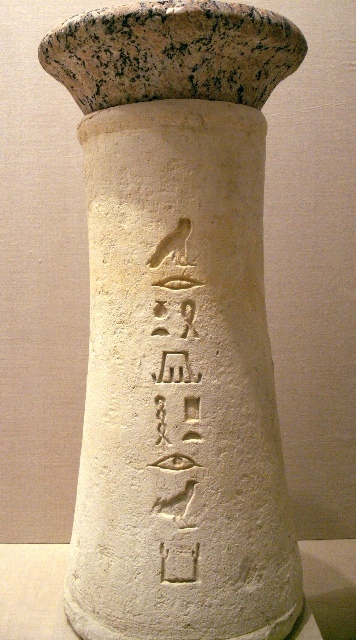 Cette coupe et son support étaient utilisés pour offrir au défunt de l'eau, vin, lait, bière et autres liquides. Ils se mettaient par paire devant la fausse porte, au travers de laquelle l'esprit du défunt était censé passer pour bénéficier de ses offrandes.