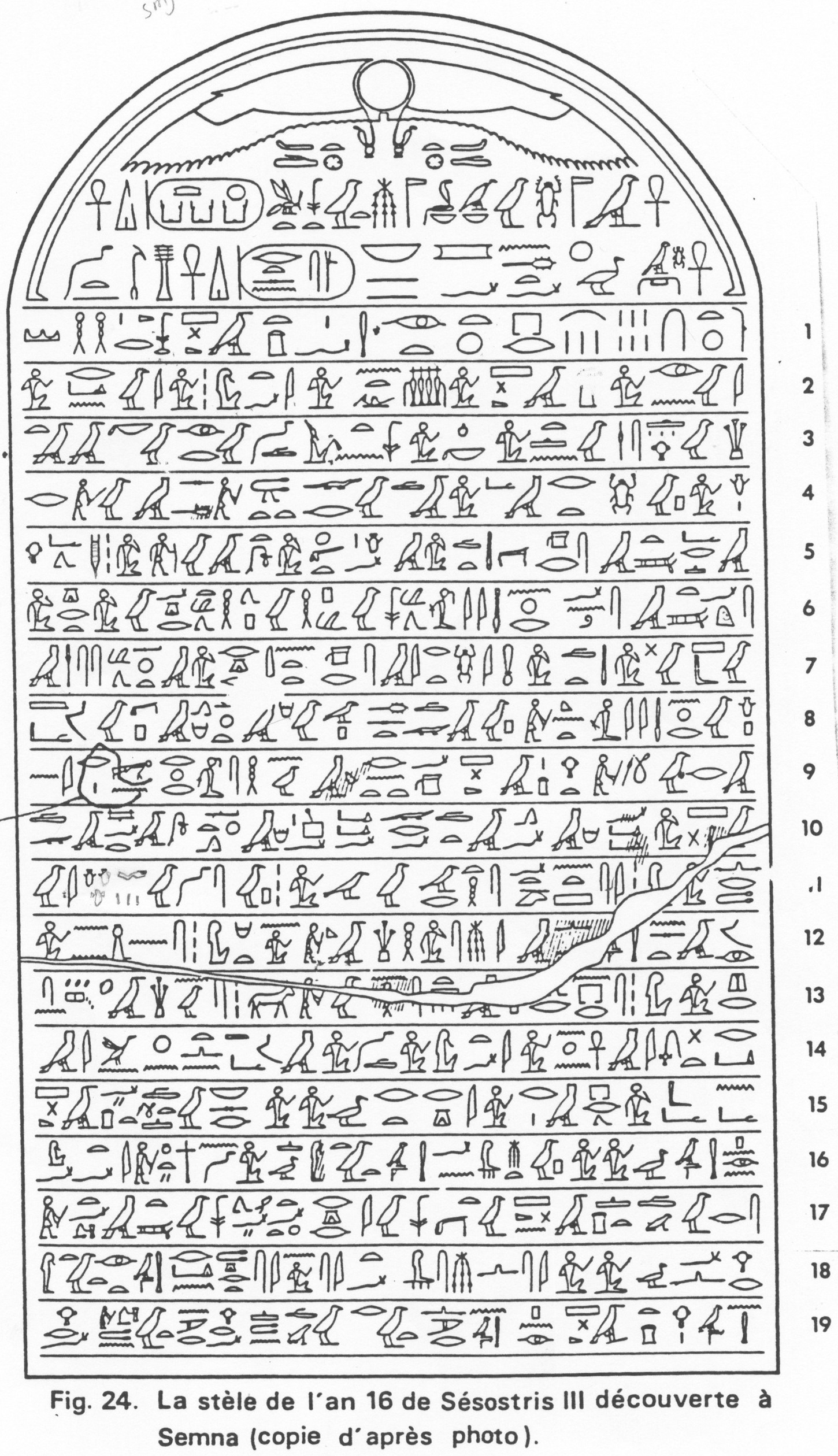 Cette stèle était érigée dans la forteresse de Semna (ancienne Héh), au sud de la deuxième cataracte, afin de marquer la frontière de l'Egypte.