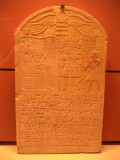 Texte affiché au Louvre : "Veuille le roi accorder une offrande à Osiris, qui est à la tête des Occidentaux, à Oupouaout, seigneur de la terre sacrée, à Anubis, seigneur de Ro-Sétaou, pour qu'ils accordent d'être bienheureux dans le ciel près de Rê, d'être puissant dans la terre près de Geb, d'être acquitté dans le cimetière près d'Osiris, de respirer l'odeur de la myrrhe et de l'encens, d'avoir une libation de vin et de lait, d'avoir le nécessaire à offrandes au complet, des offrandes en toutes sortes de fruits, de recevoir les pains qui montent devant (les dieux) sur l'autel des maîtres du grand temple, d'avoir un bel enterrement après la vieillesse, de rejoindre la terre à l'ouest de sa ville, de sortir en ba vivant sous toutes les formes qu'il désire, pour le ka du prêtre-imy séta d'Onouris, le grand prêtre-ouâb, Pentchény, (fils de) la dame Touiou, né du prêtre-ouâb Dadaÿ enfanté par la dame Ipou."Données muséographiques MET :