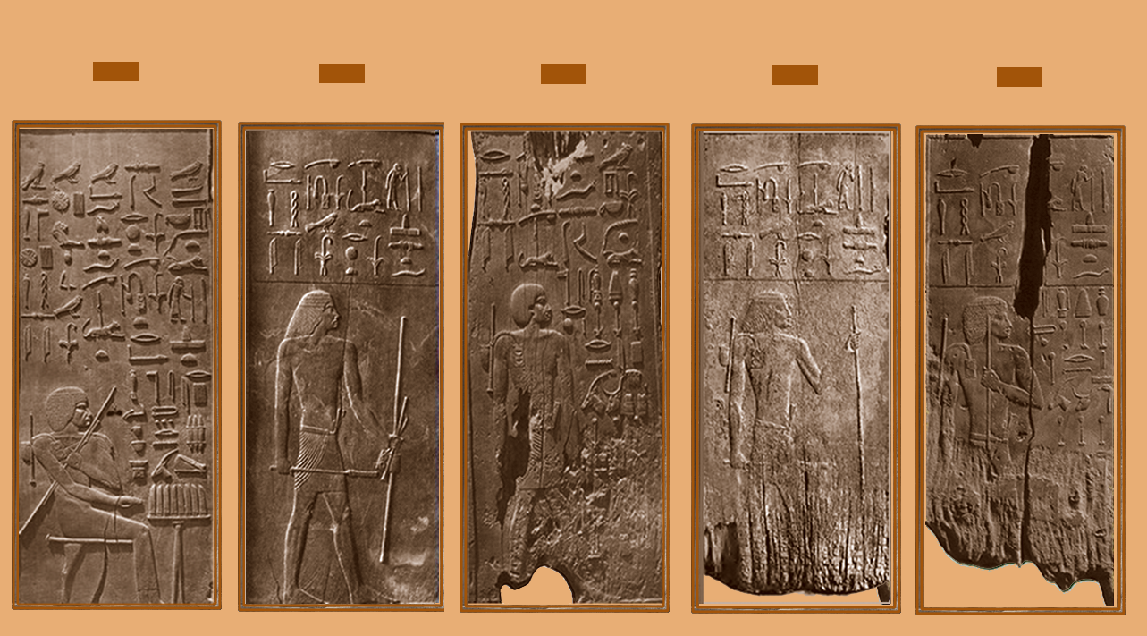 Malheureusement sur les 11 panneaux, 5 seulement sont au Musée du Caire, un sixième figure dans le livre de Quibell : « Excavations at Saqqara » ; il est presque entièrement détruit, tous les autres ont disparus.