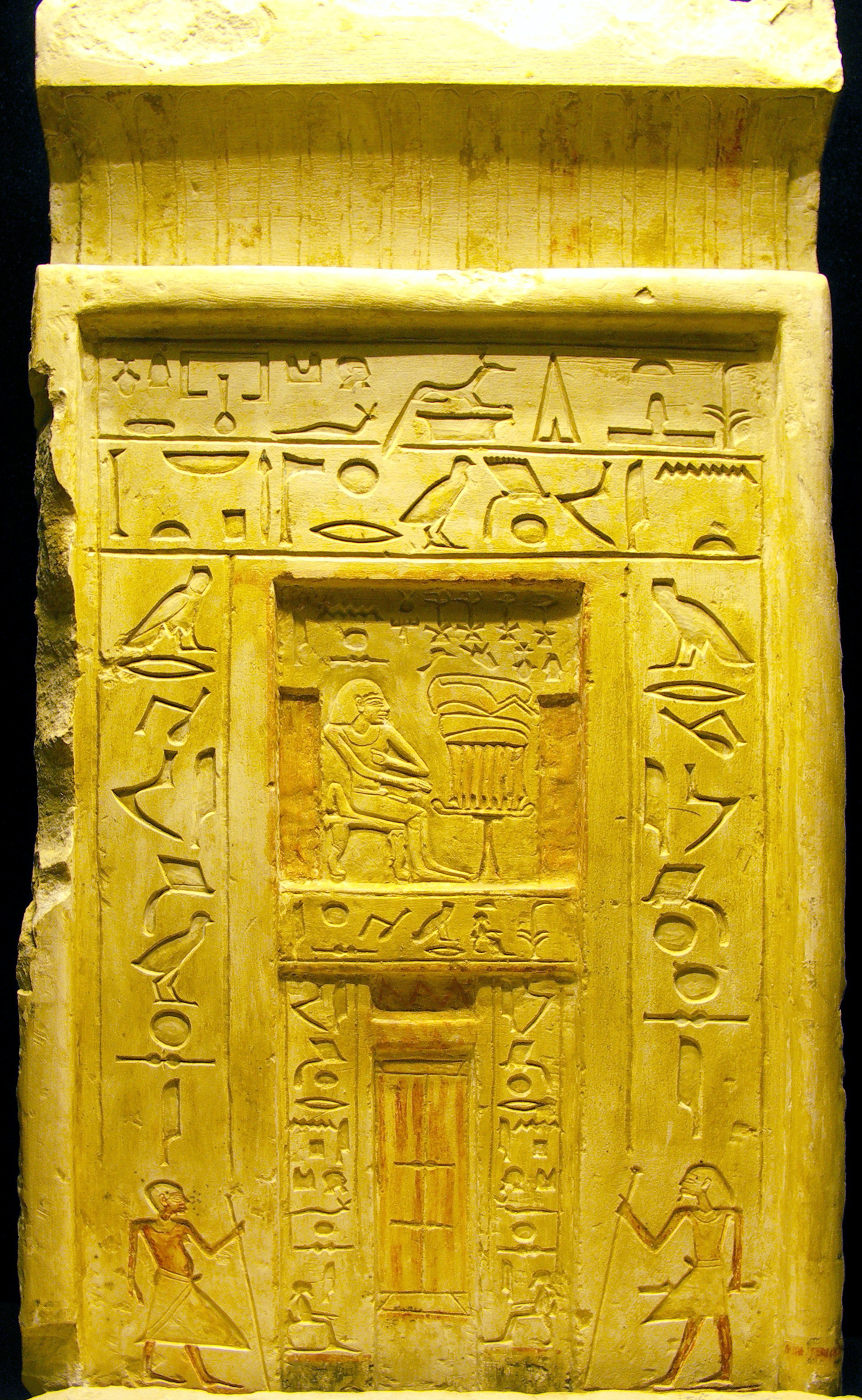 La fausse porte est également constituée d'un soubassement non représenté ici.